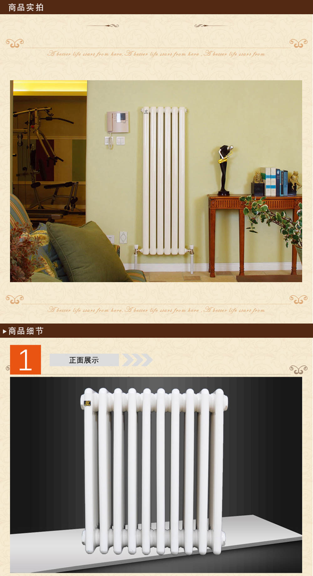 d、产品装饰性较好,勿再加暖气罩,避免降低散热量。