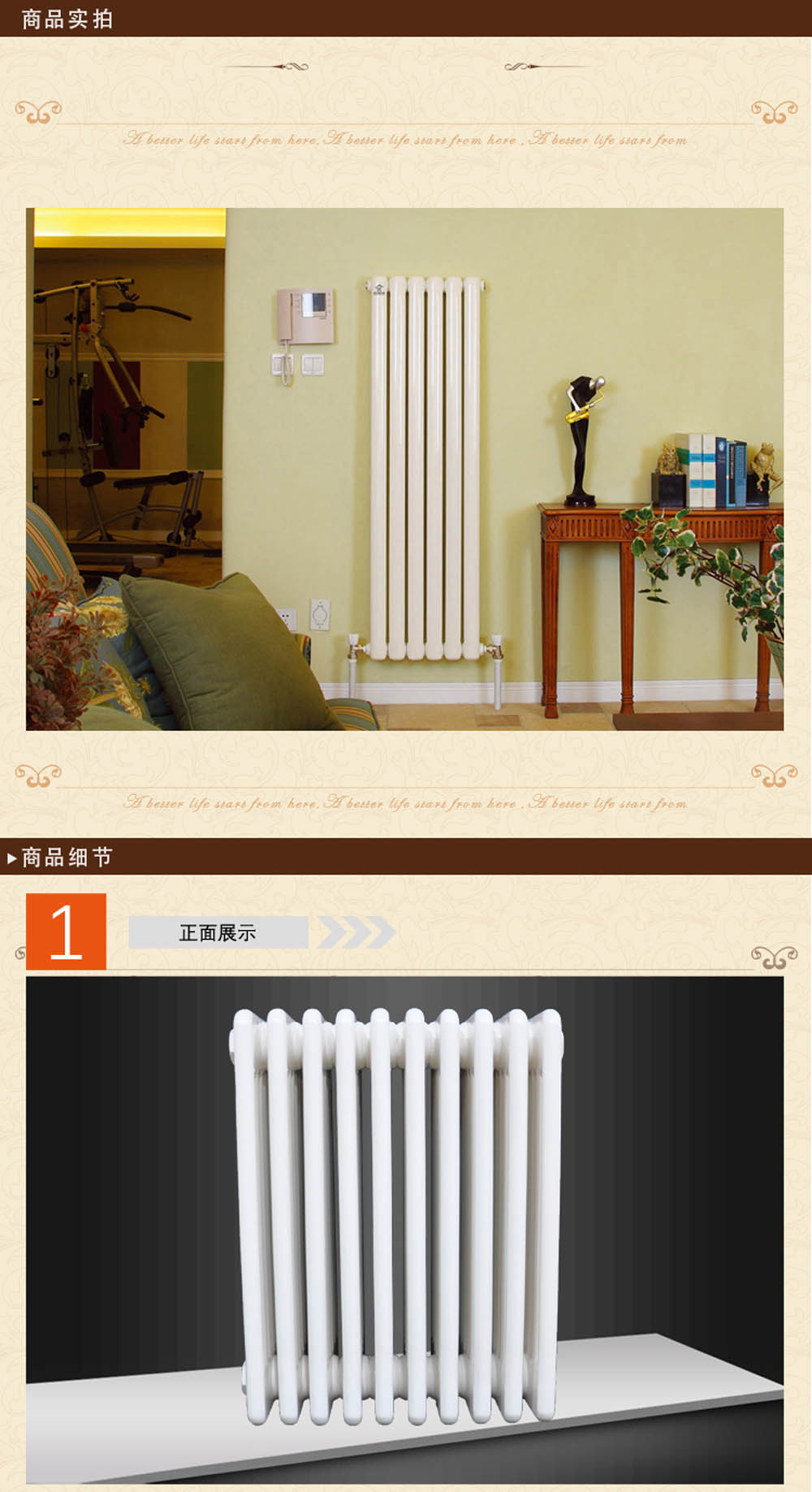 d、产品装饰性较好,勿再加暖气罩,避免降低散热量。