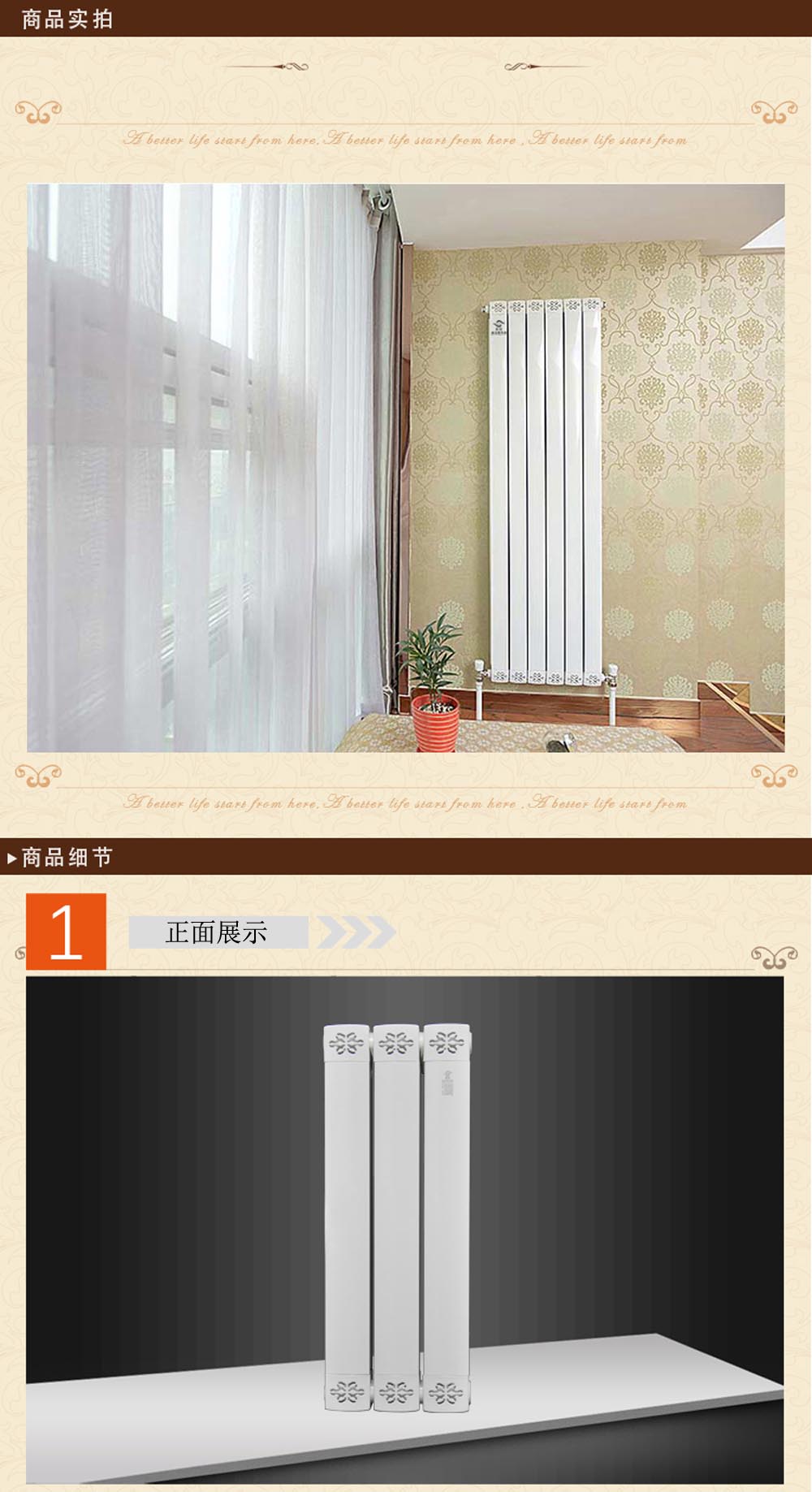 d、产品装饰性较好,勿再加暖气罩,避免降低散热量。
