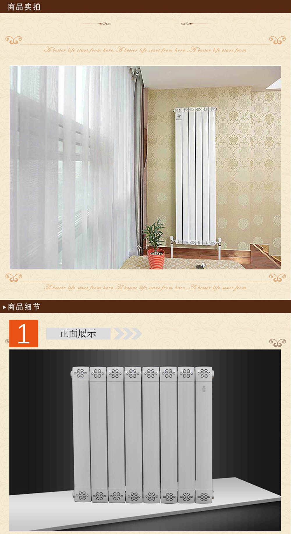 d、产品装饰性较好,勿再加暖气罩,避免降低散热量。