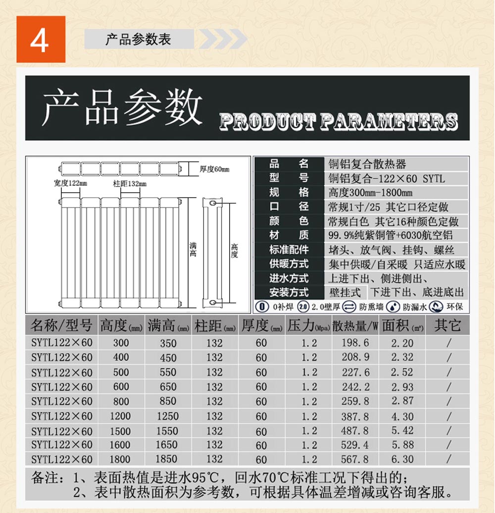 d、产品装饰性较好,勿再加暖气罩,避免降低散热量。