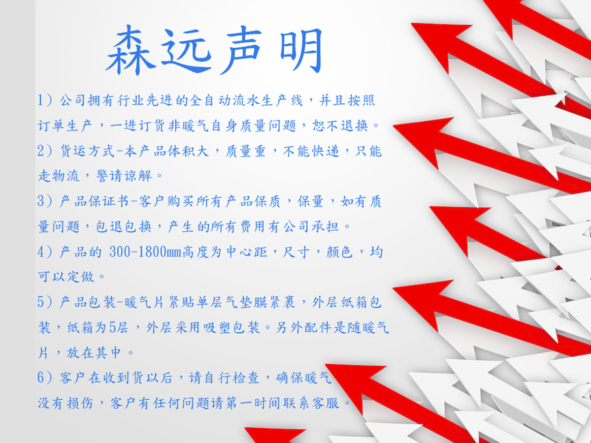 运输说明:散热器属于大件产品,不能发快递,本店一般发专线物流,详细运费请咨询客服,产品物流费附带发票。